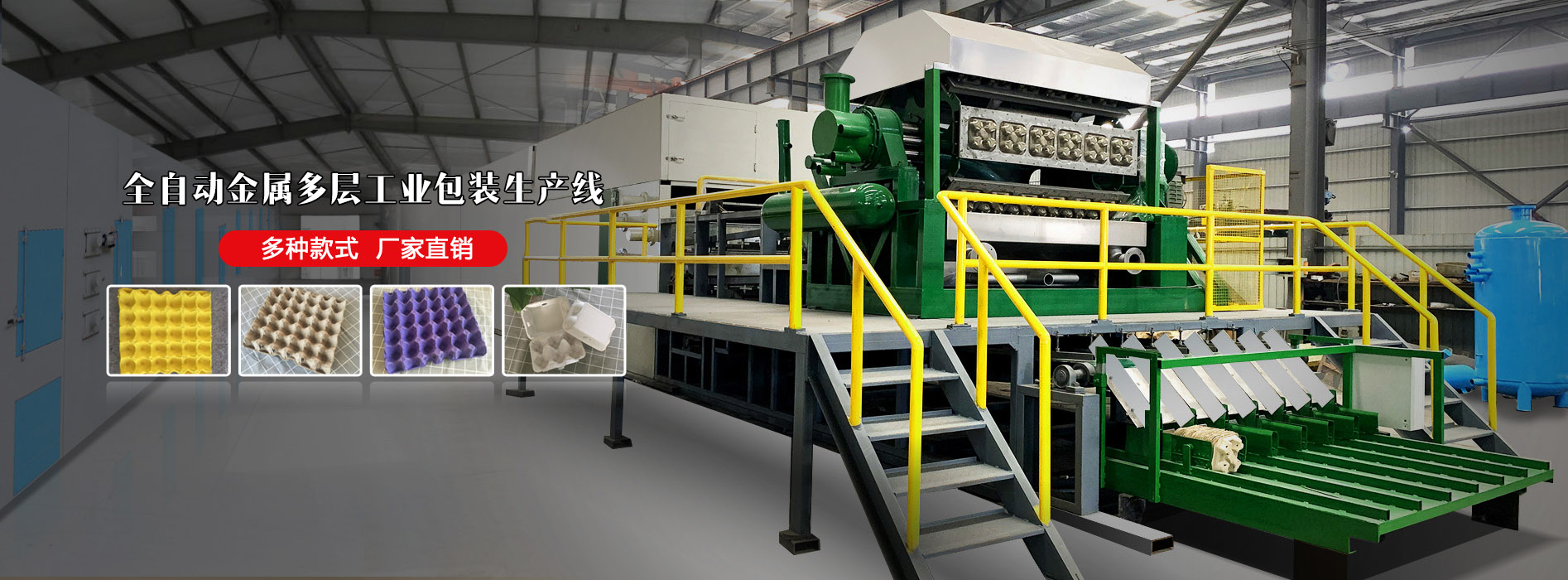 主要產品有:各種大中小型蛋托機,流水線,整套設備;紙漿模縮機,包裝機,定型機;各種模具蛋托成品,烘干鐵托盤,晾曬珠托盤以及各種蛋托機配件。產品規(guī)格齊全,質量精良,銷往全國各地并遠銷美國、俄羅斯以及東南亞一些國家和地區,深受國內外用戶的信賴。